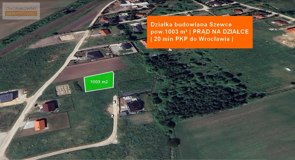 Działka 1003 m² | Szewce | Media: Prąd i Woda | 15 min do Wrocławia